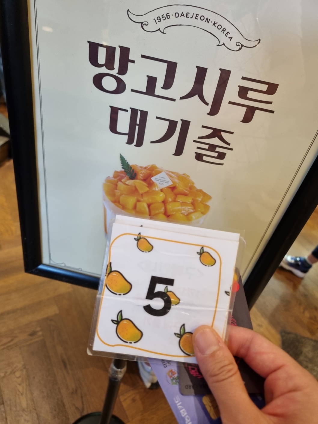 이미 앞에 3~4명 정도 계셨고, 얼떨결에 그 뒤에 서서... 자연스럽게... 2시간 정도 기다려 결국 망고시루를 구매했네요.