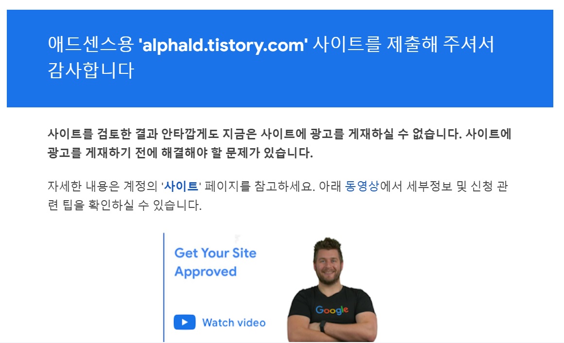 네.... 지금은 사이트에 광고를 게재할 수 없다는 메일....