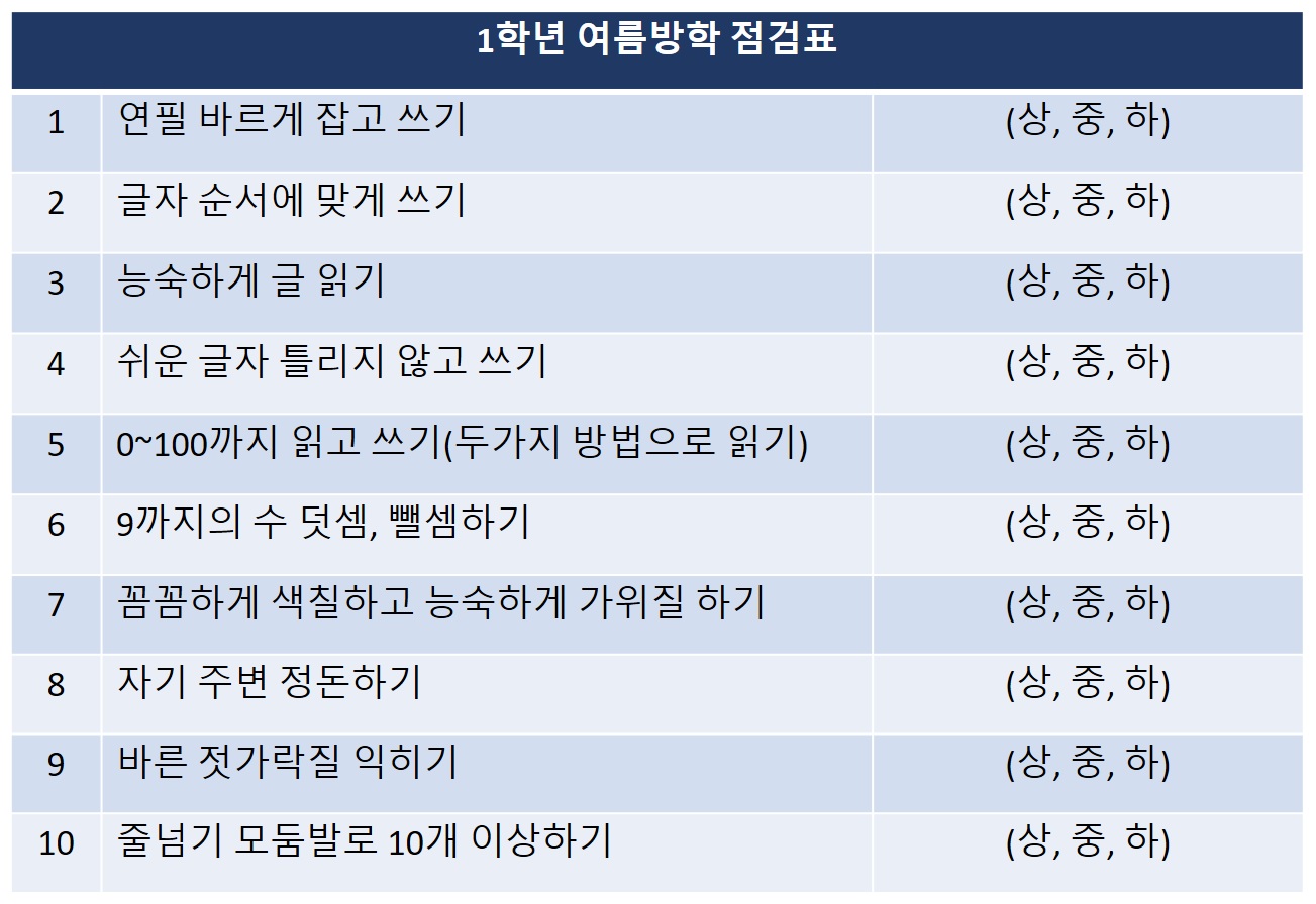그럼 1학년 여름방학, 꼭 점검해보고 챙겨주어야 할 것은 무엇일까요?
