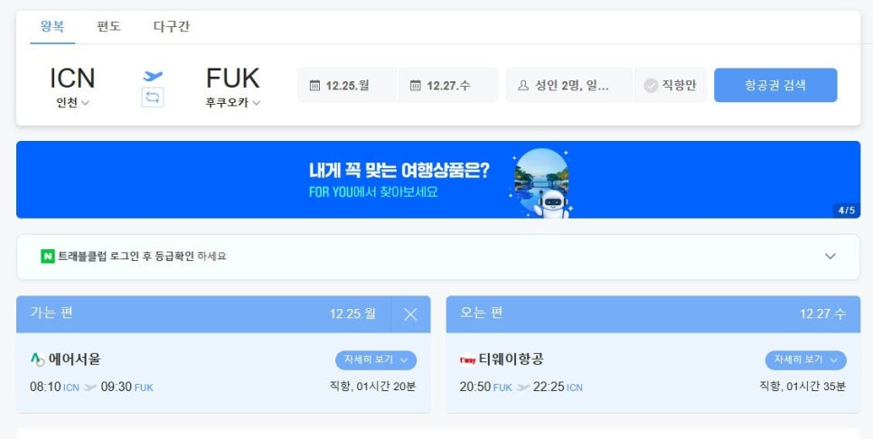 아무래도 짧은 여행 일정이다보니 갈때는 최대한 아침 일찍, 올 때는 오후 늦게로 예약하게 되었네요.