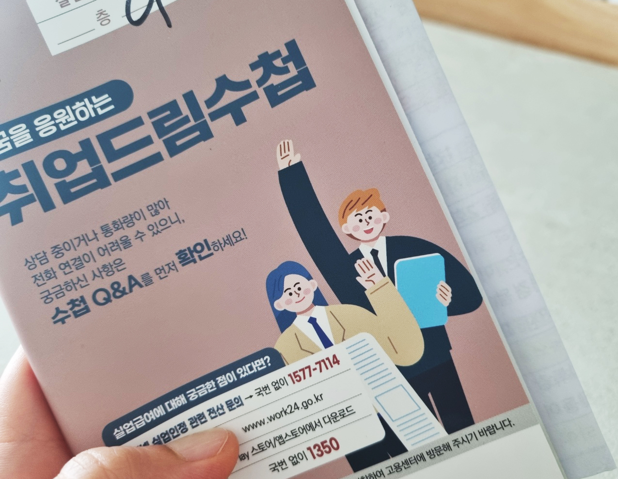 실업급여를 신청하고 첫 실업인정일(첫 출석일)에 센타를 방문하면 취업드림수첩을 나누어 주어요.