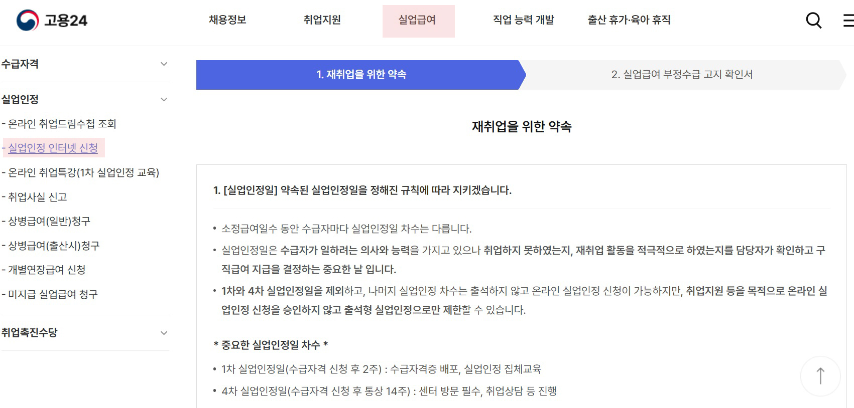 ▷ 재취업을 위한 약속을 읽어보고 체크 체크 V 실업급여 부정수급 고지 확인 체크 체크 V