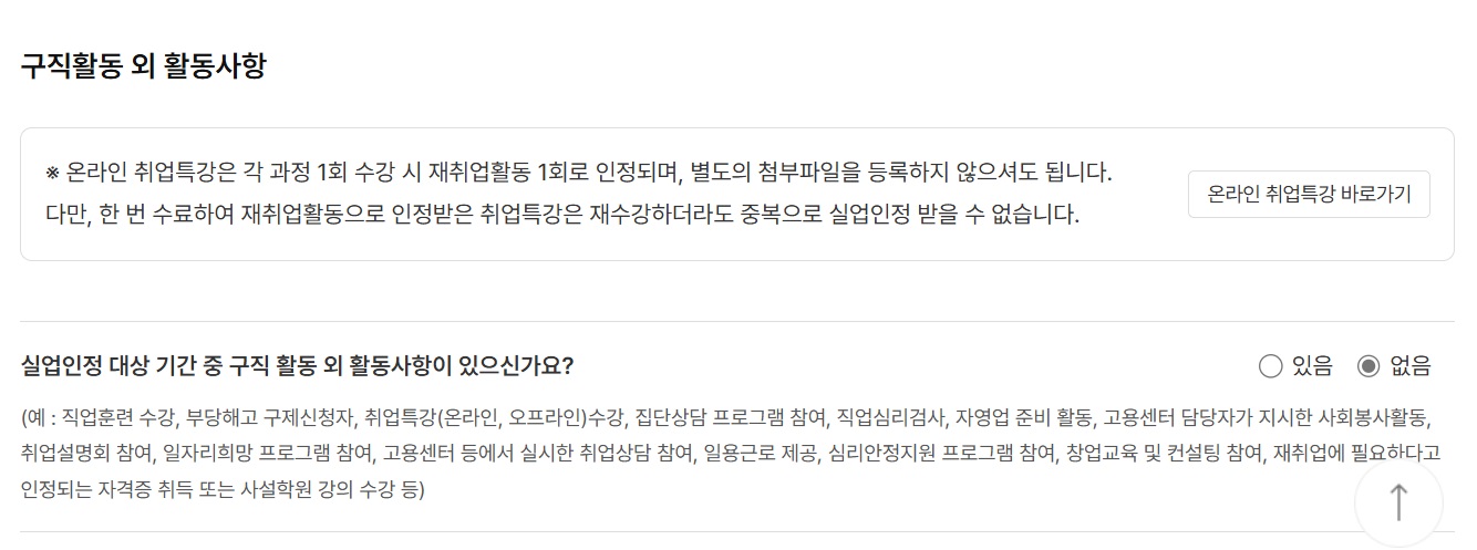 구직활동 내역과 구직활동 외 활동사항으로 나뉜답니다.