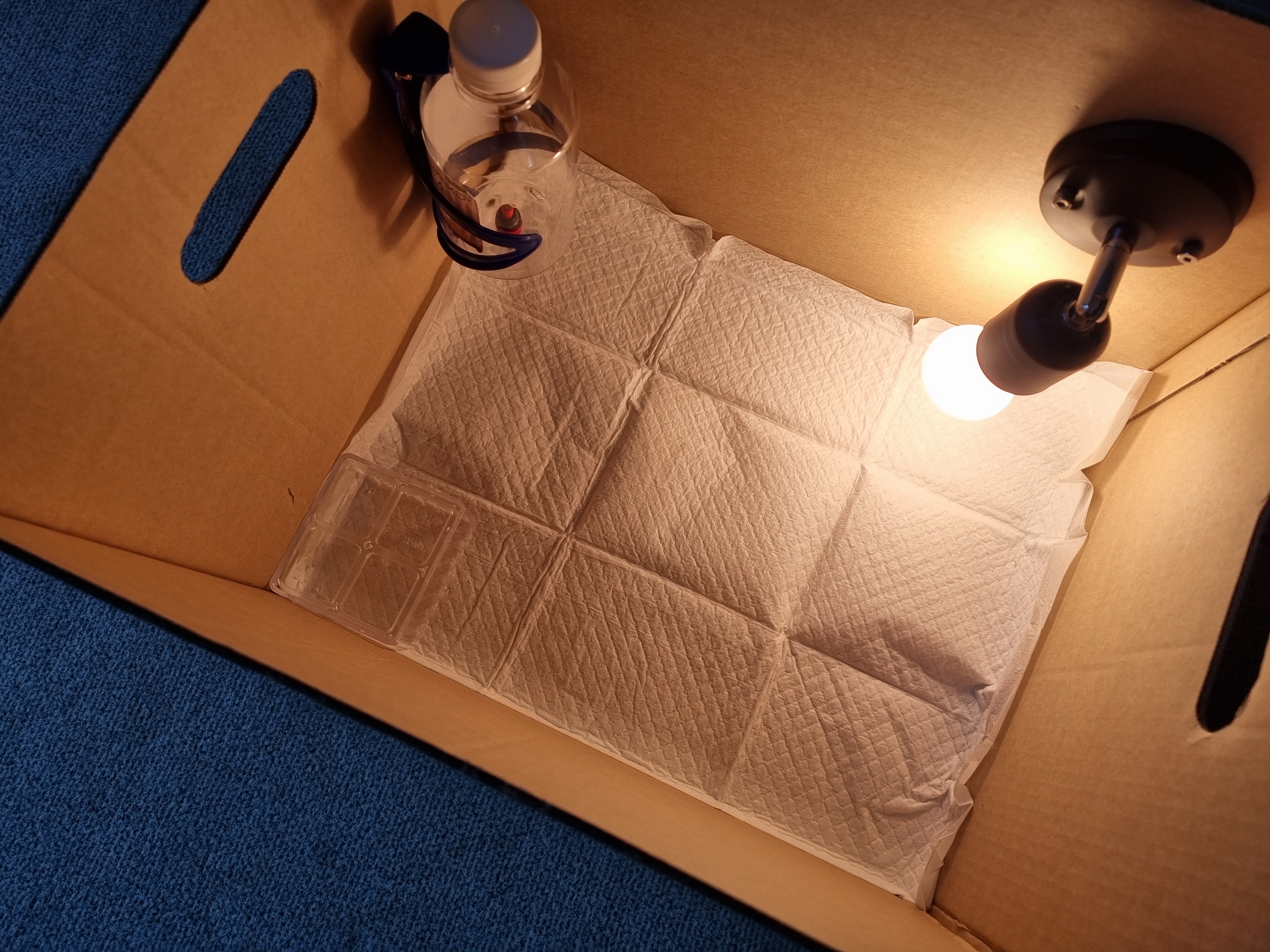 어떻게해야하나 고민하다가 조금 털이 마르는 걸 기다려 준비해놓은 집으로 옮겨주었어요.