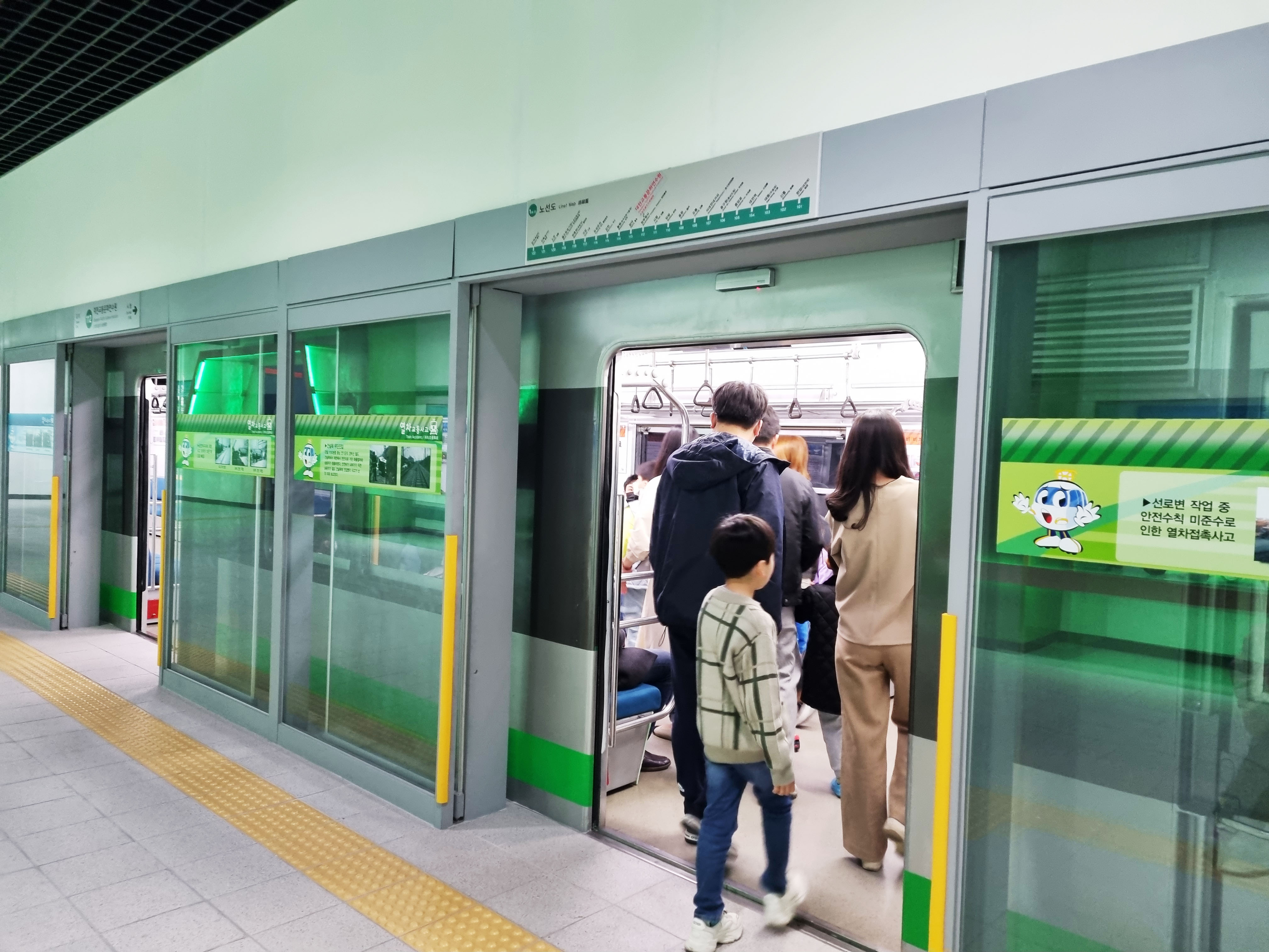 지하철 탑승 중 화재가 일어났을 시 안전하게 문을 열고 대피할 수 있는 방법을 습득하고 체험할 수 있었답니다.