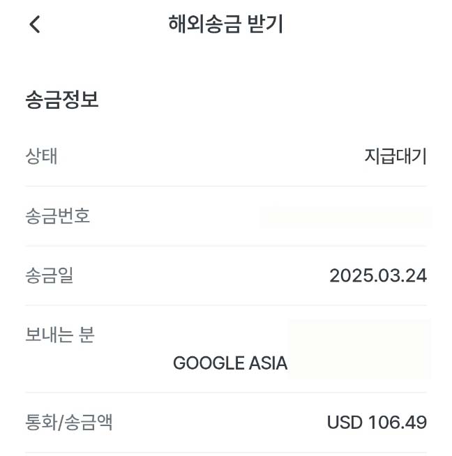 그리고 오늘 아침, 해외송금이 도착했나는 은행으로부터의 메세지를 받았어요.