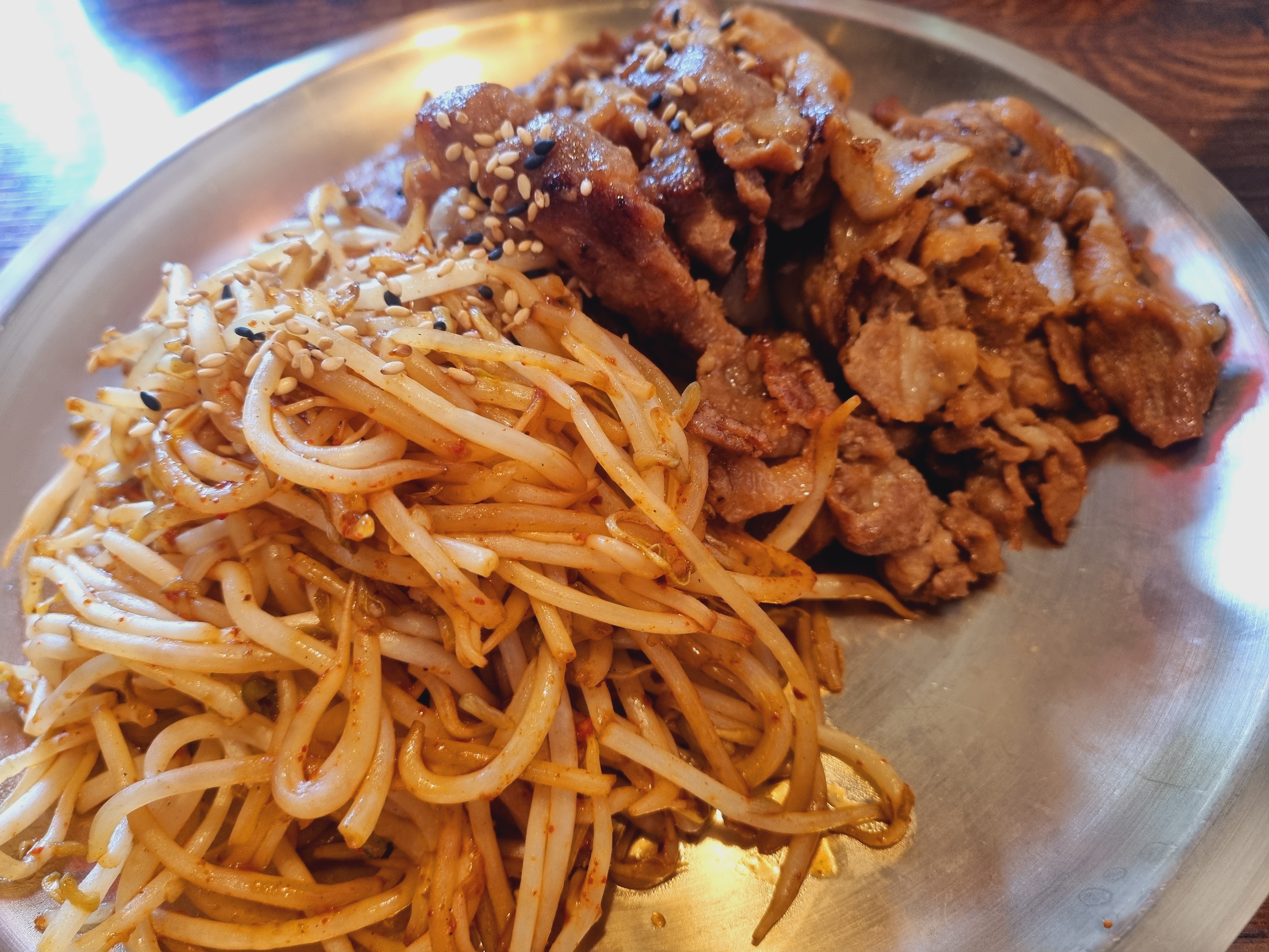 직화구이라 그런지 고기가 정말 맛있고, 함께 나온 숙주와 함께 곁들여 먹으니 식감도 너무나 좋아 밥 한공기 뚝딱~ 하겠더라고요.
