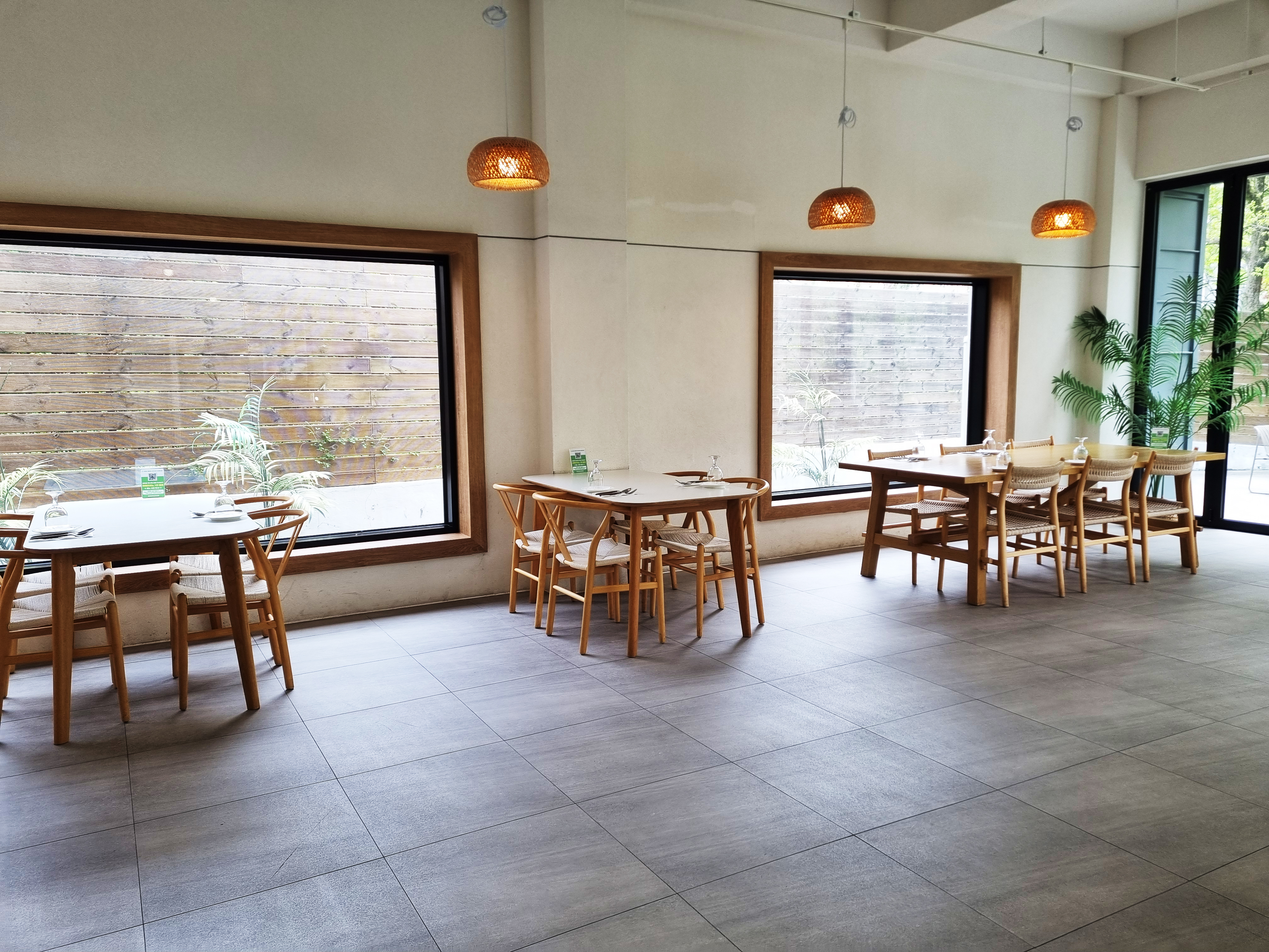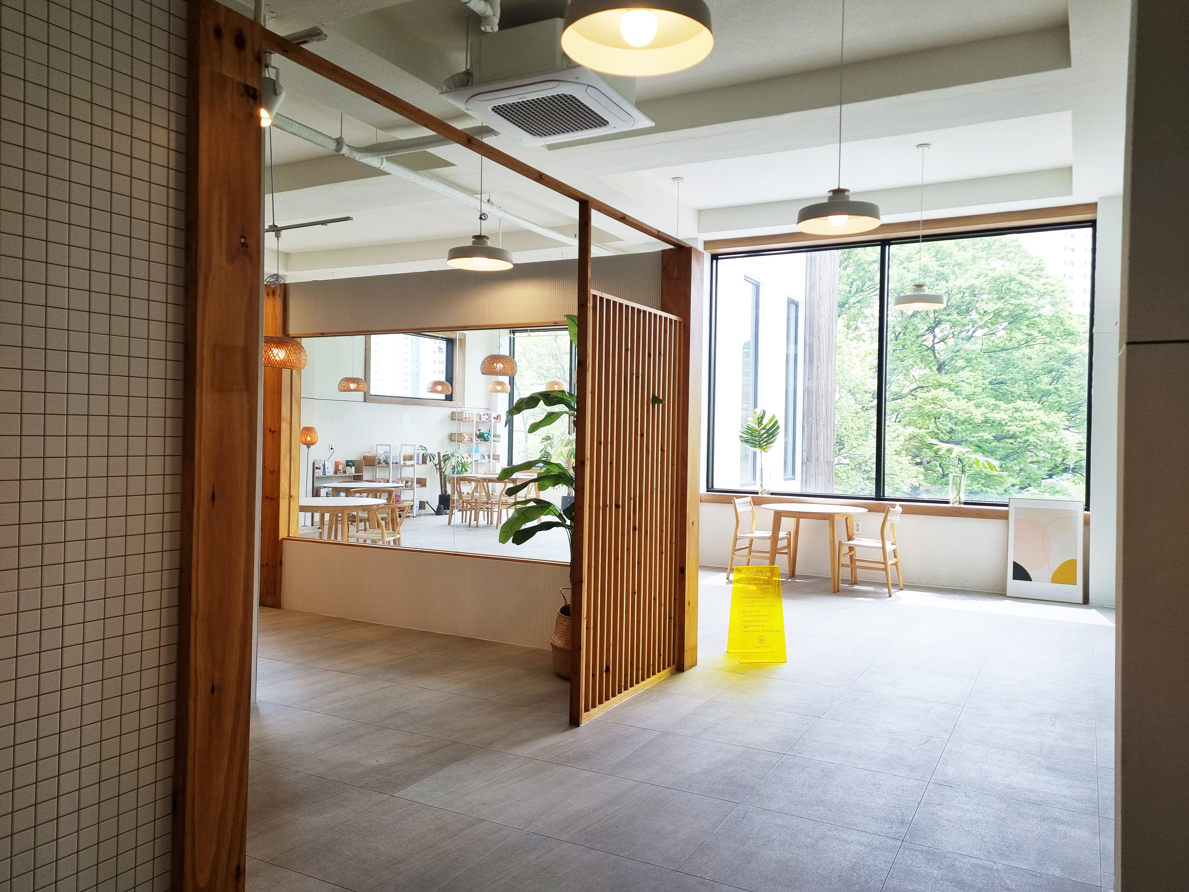 시원시원하게 뚫린 창문. 넓직한 홀에 자리잡은 몇 안되는 테이블.