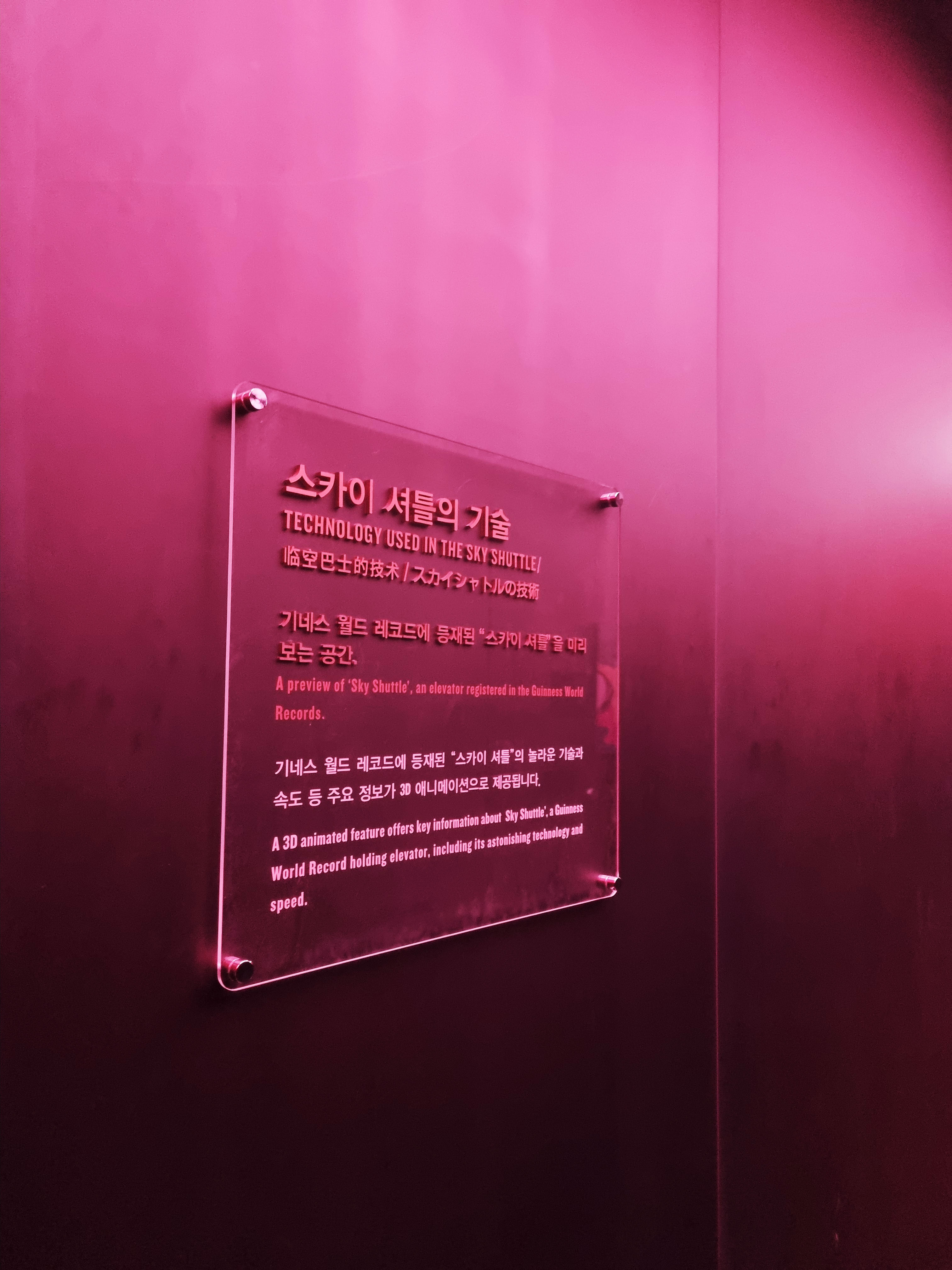 서울스카이전망대에 가기위해 엘레베이터를 타고 올라가는 길에도