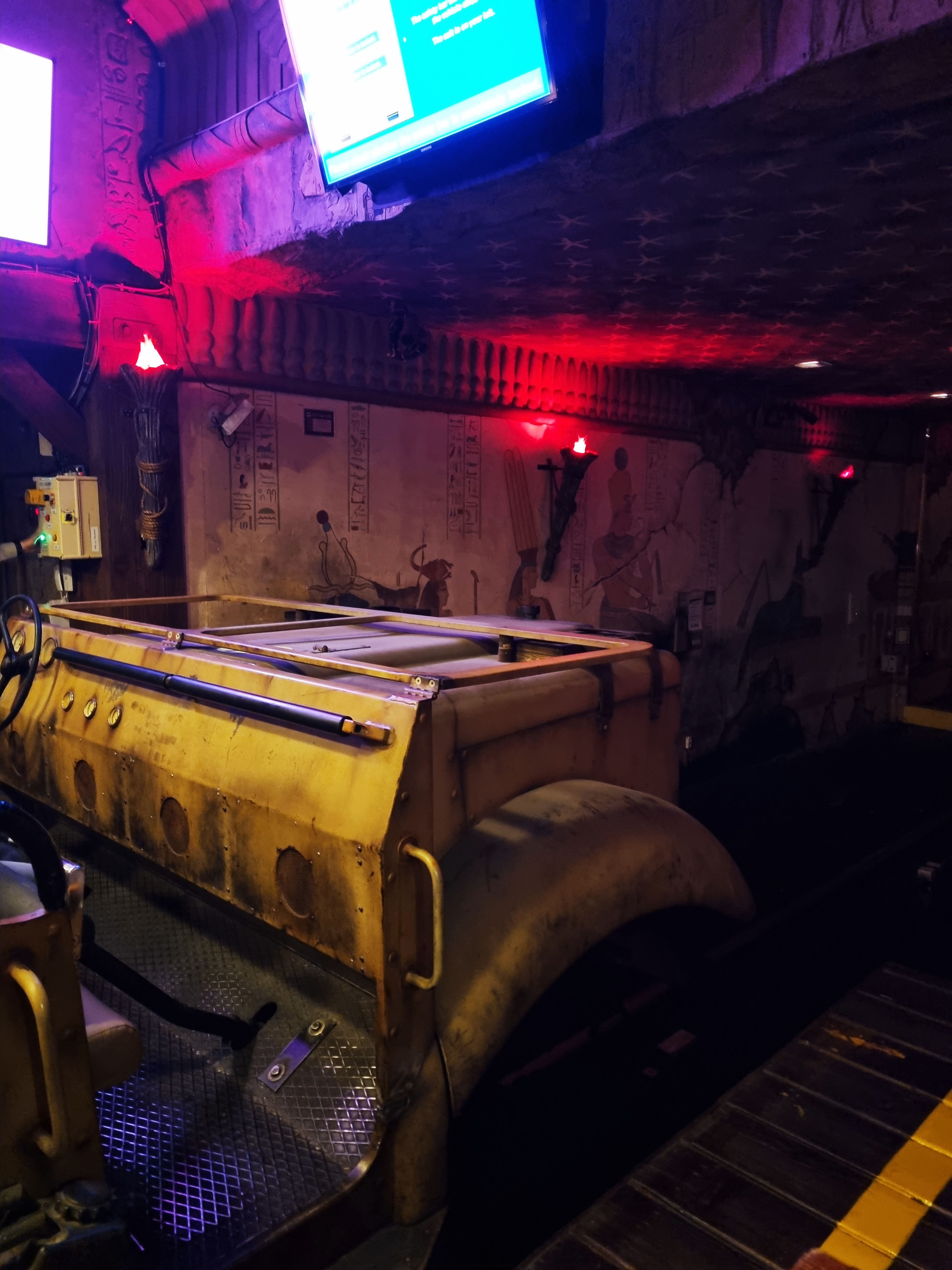 파라오의 숨겨진 보물을 찾기 위해 빠른 속도로 정신없이 흔들리는 지프차를 타고 신전을 탐험한다는 설정을 가진 어트랙션.