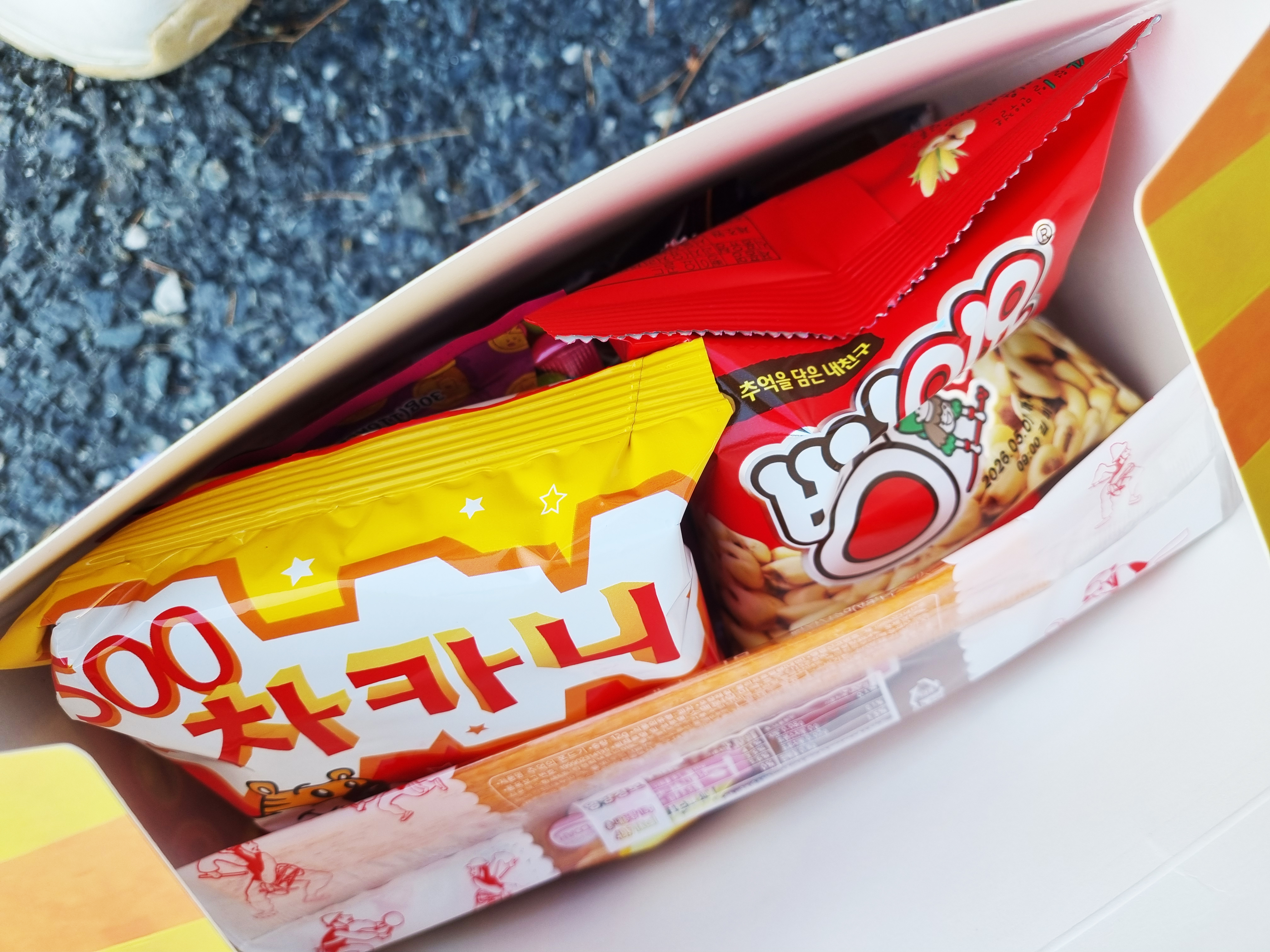 집에와서 풀러보니 추억의 과자와 전천당 젤리같은 간식이 10종정도 들어있는데....