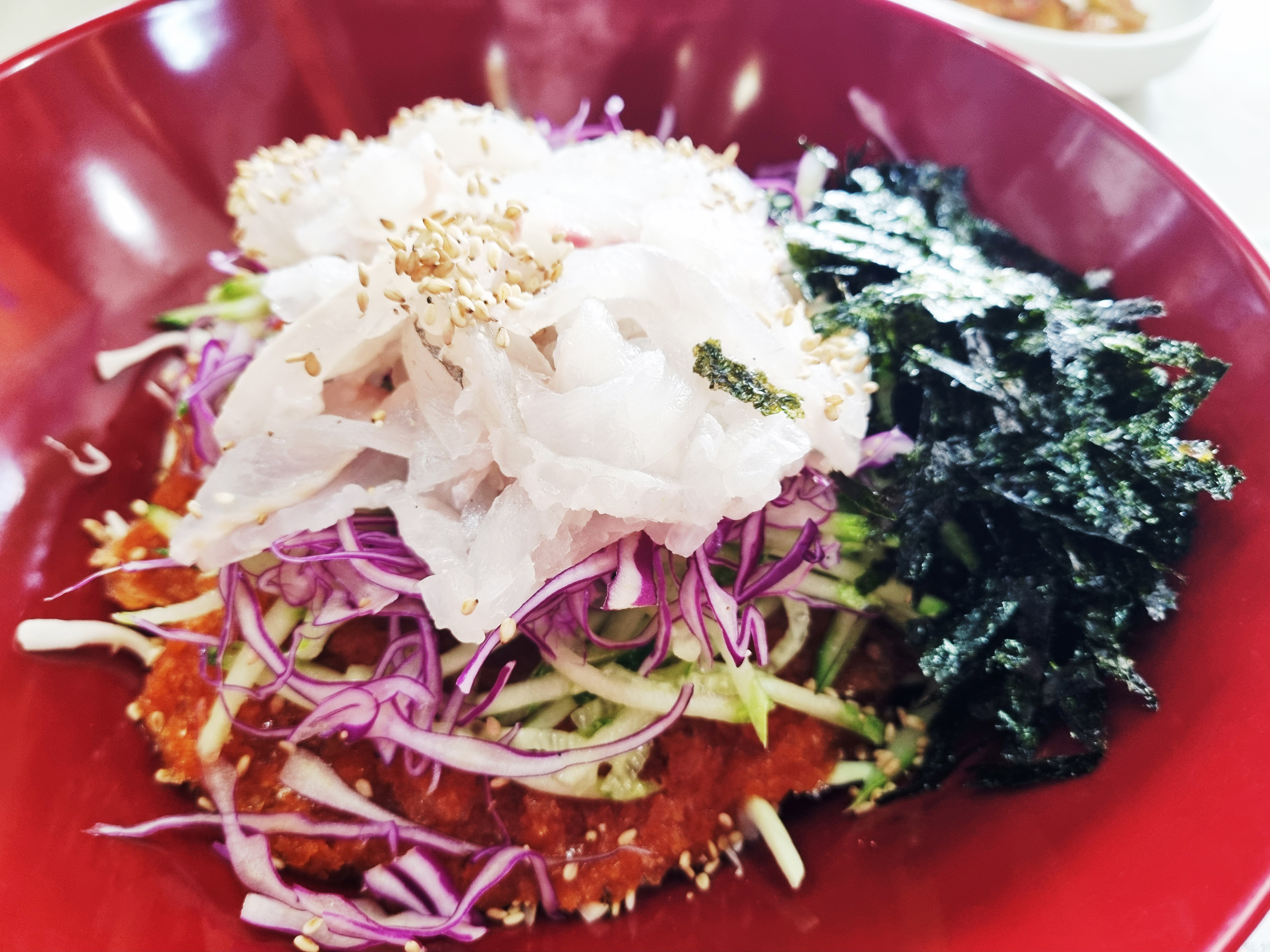 쓱쓱 비벼서 먹으면 야채의 아삭아삭 씹히는 맛과 부드러운 회의 조화가!!!