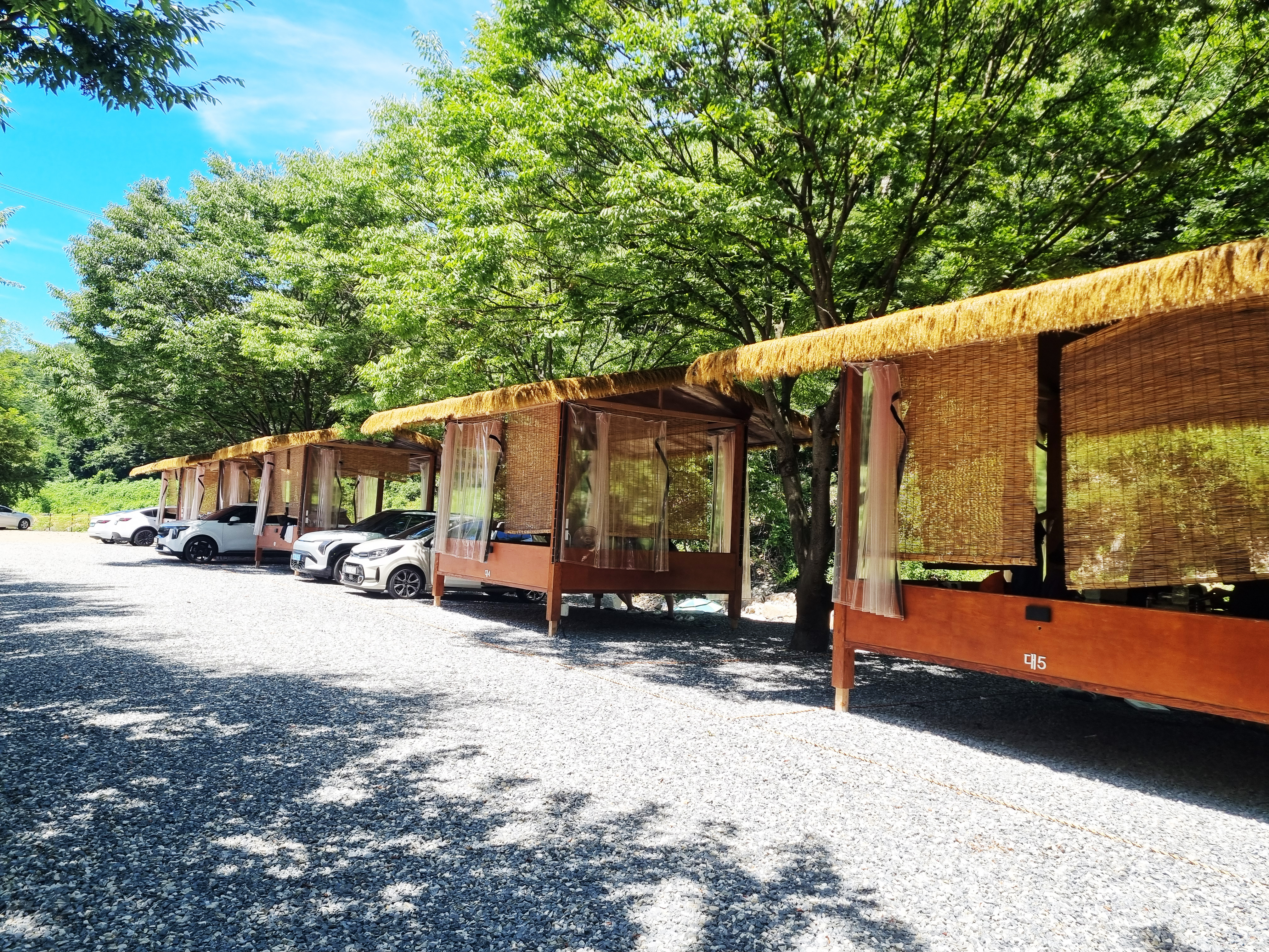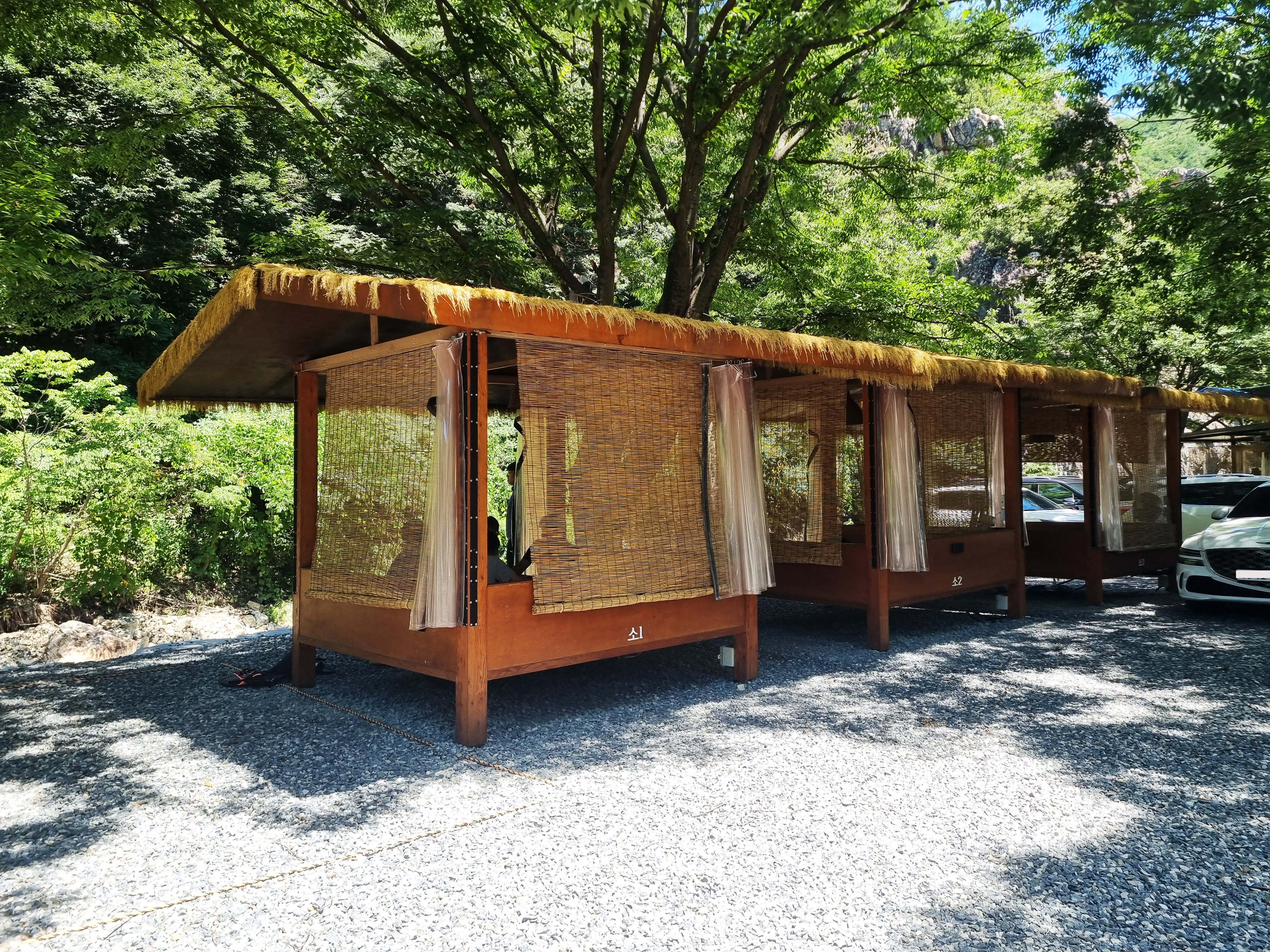 저희는 계곡 앞쪽의 방갈로를 대여했고,