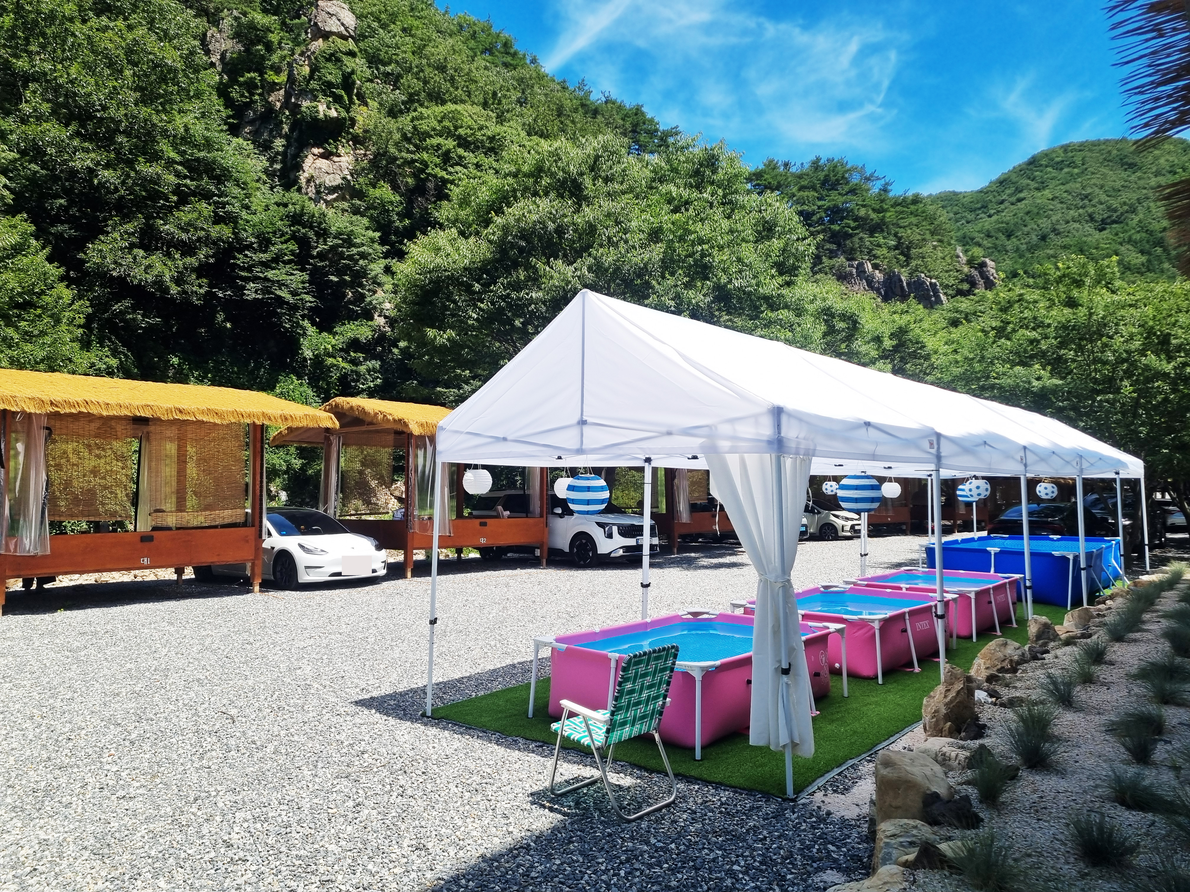 수영장은 생각도 못했는데 이렇게 스테이인터뷰쪽에서 따로 마련해주니 계곡 물놀이도 즐기고 수영장에서 수영도 하고 너무 좋더라고요.