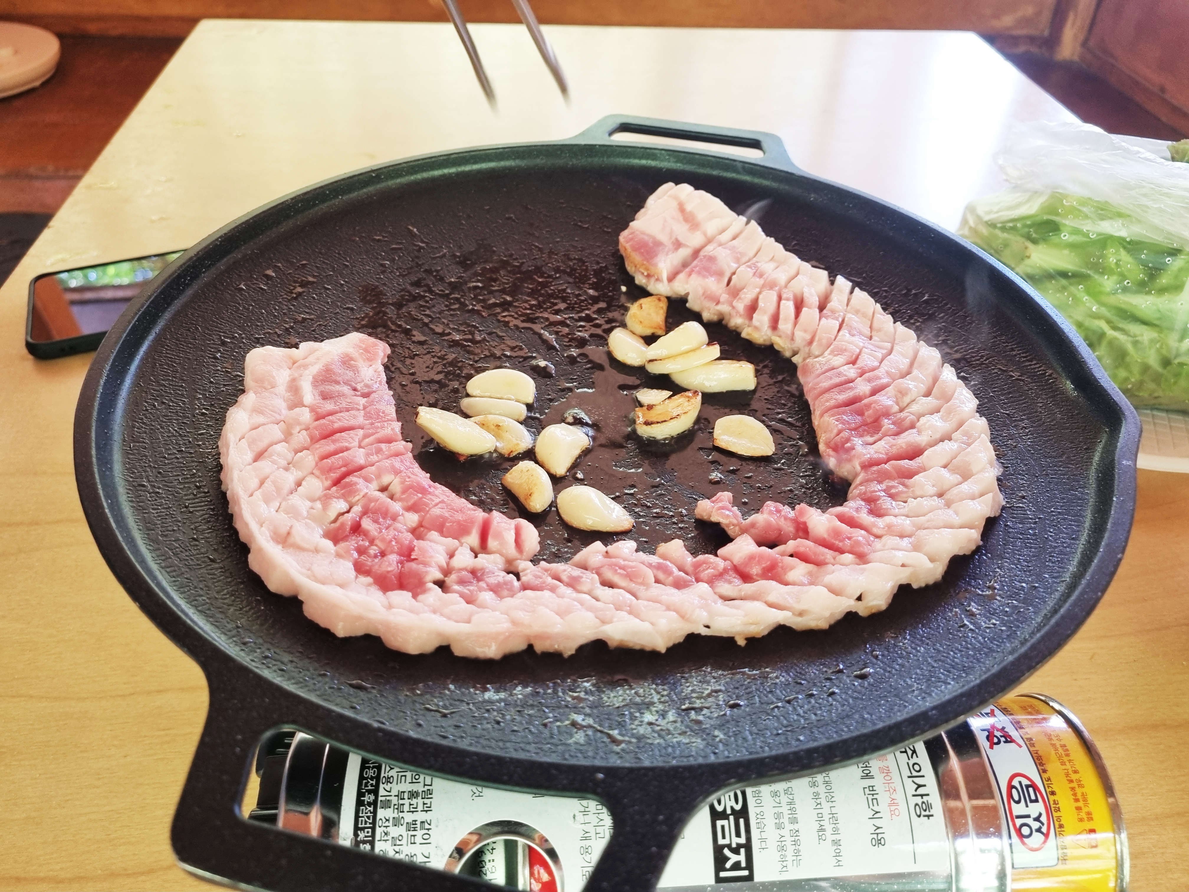 방갈로에서 고기도 구워먹고 라면도 끓여먹고, 간식도 먹고...